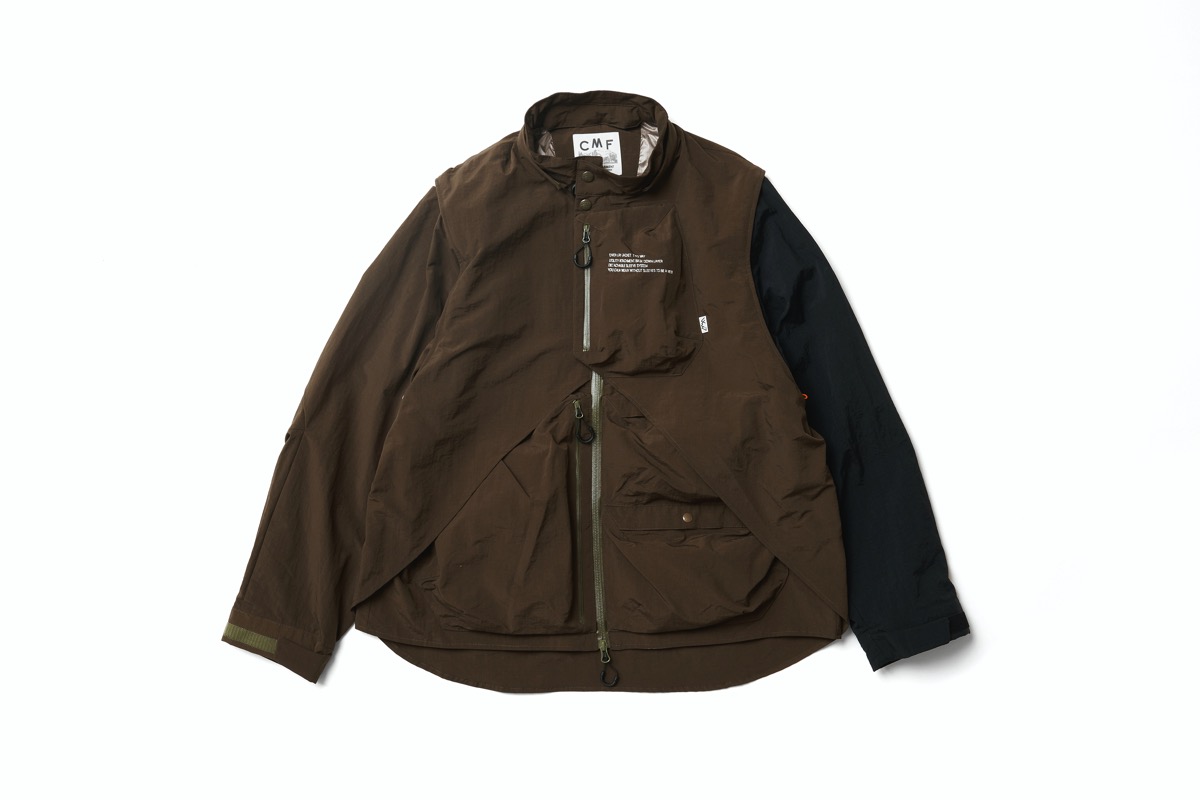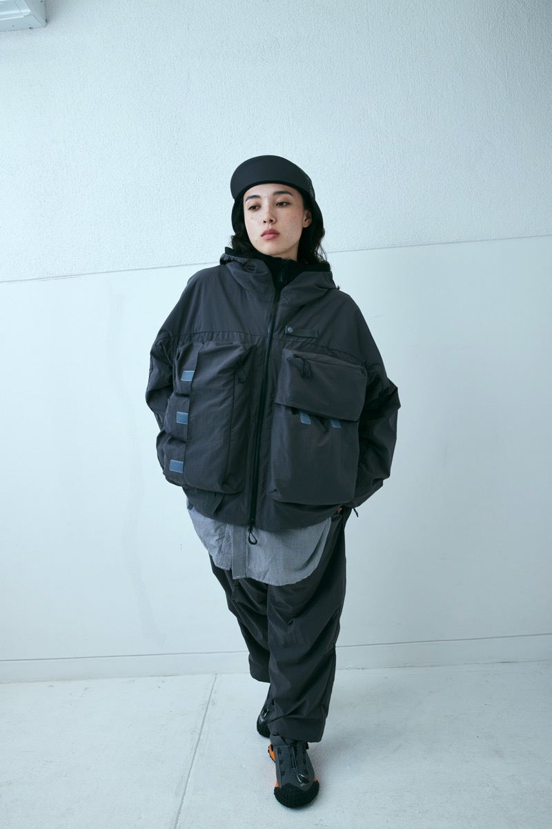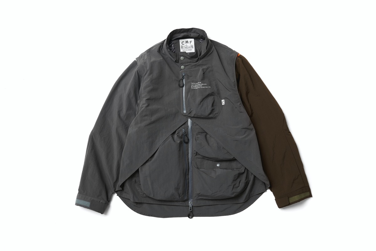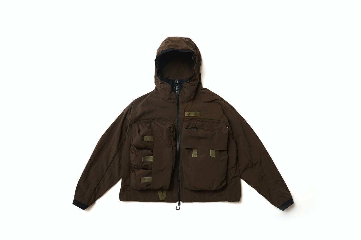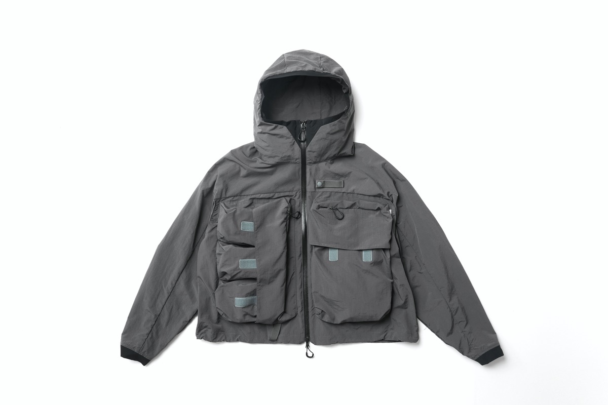 シワシワ撥水ナイロンと撥水リブで構成したフィッシングジャケット。