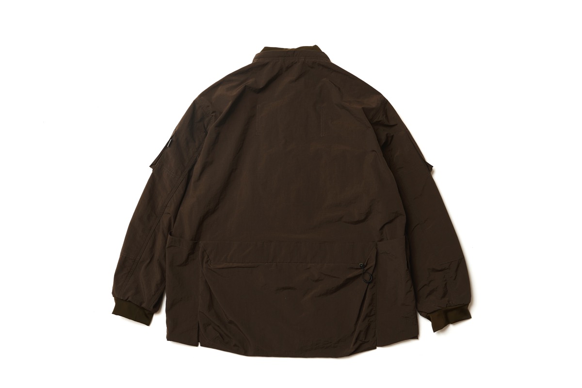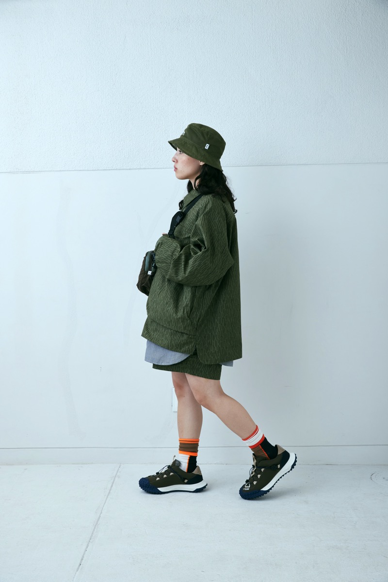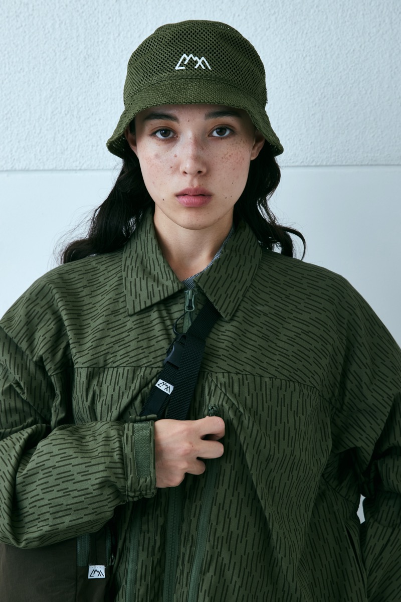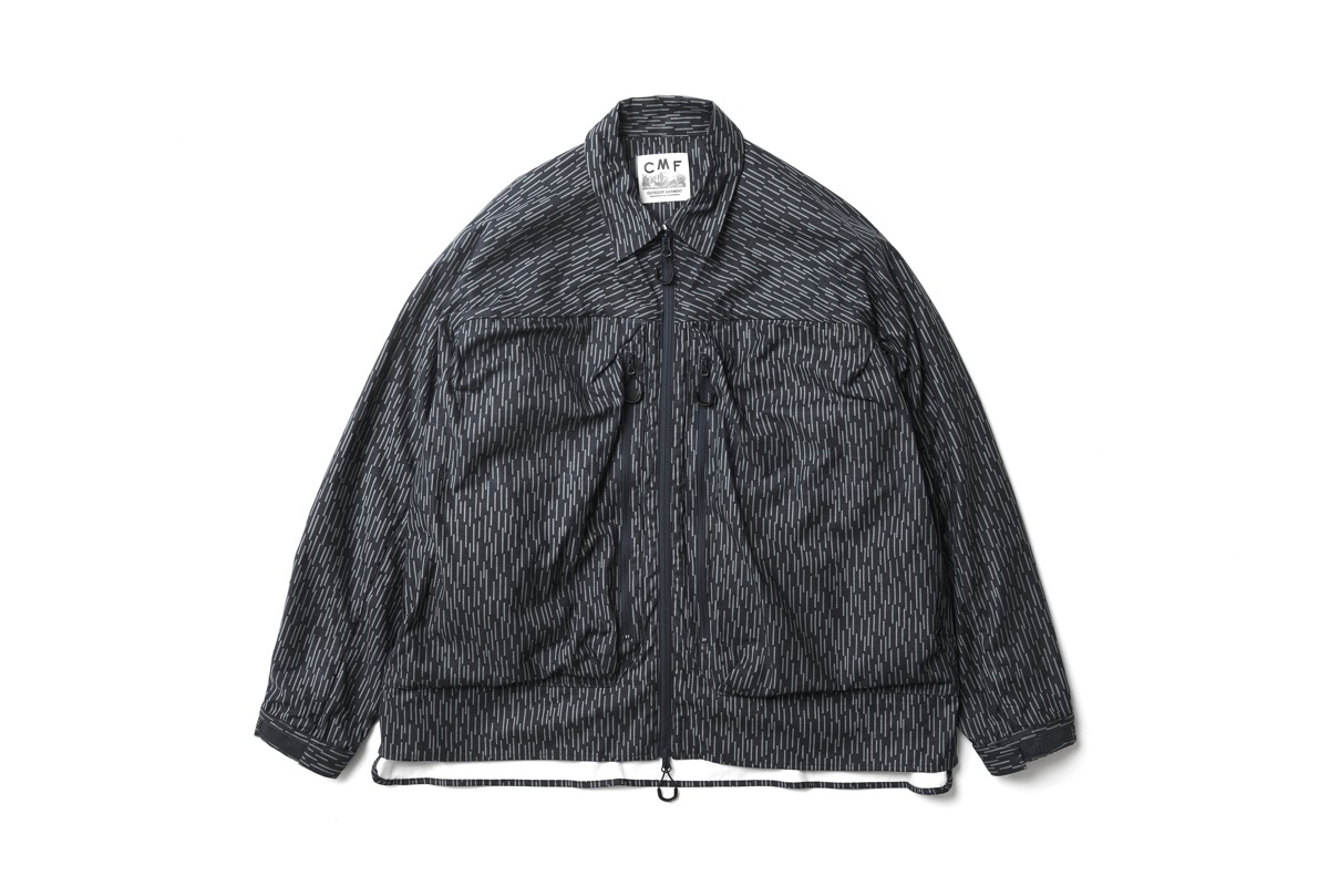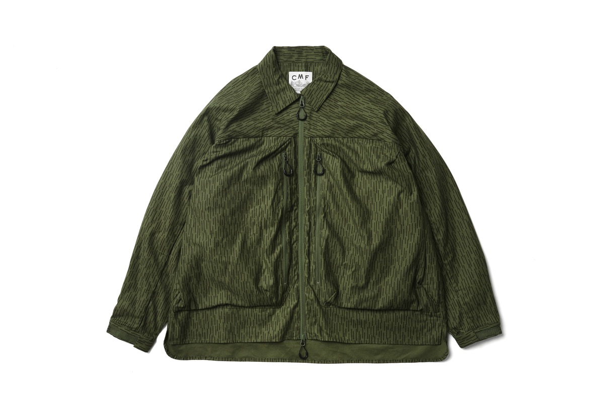 シェルで作った型をシャツに再構成。今期は CMF としては珍しく総柄のレインカモで製作。綿 100。