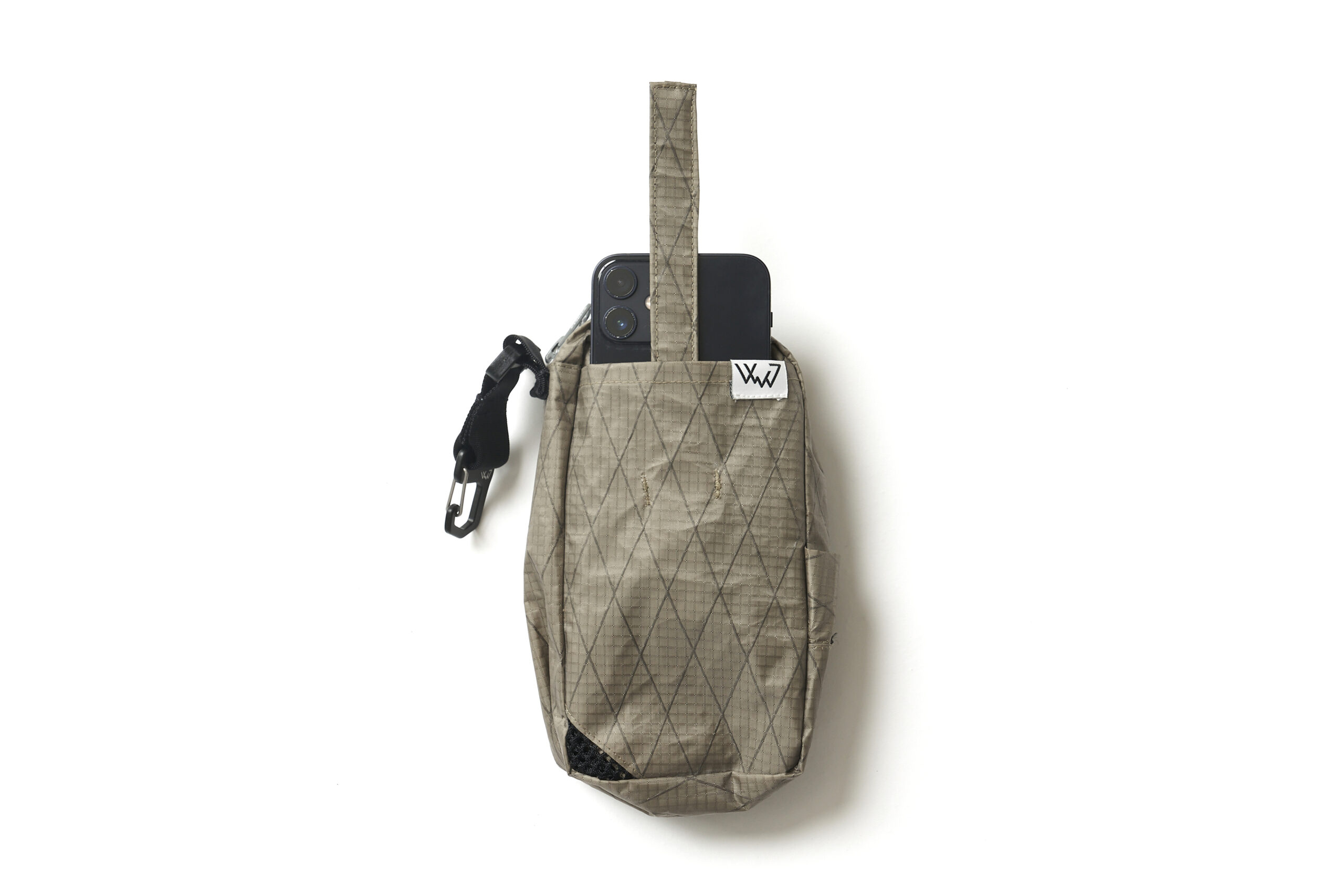 財布、携帯、たばこ等を入れられるサイズで作ったスマフォケース。バックパックのショルダーハーネスに取り付け可能