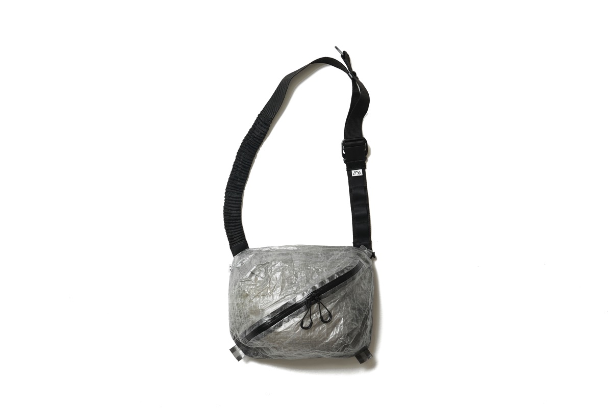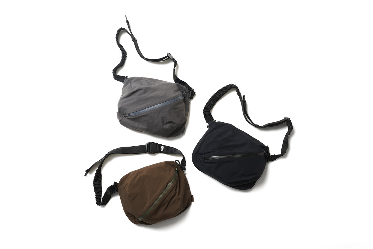 容量 5Lのポーチを作成。今期は DURAFLEX のクリップをキーパーツにした。織りのみで伸縮できる