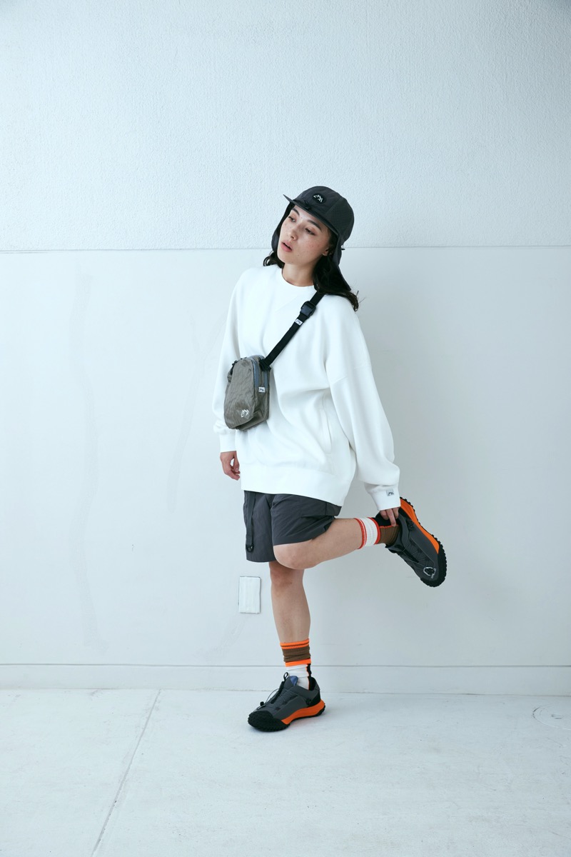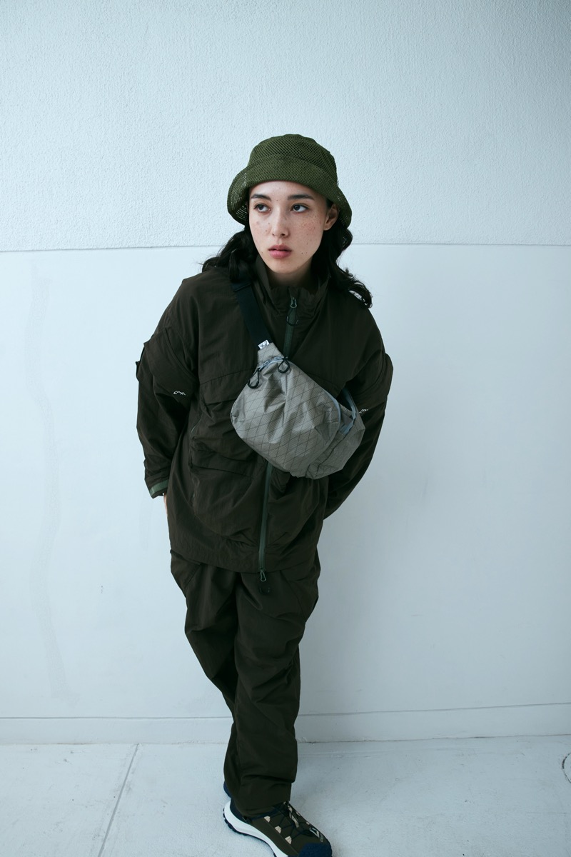 X PACを使用し、体にまとわりつくようなボディバッグを製作。長短二個の部屋で必要なものを収納できる。